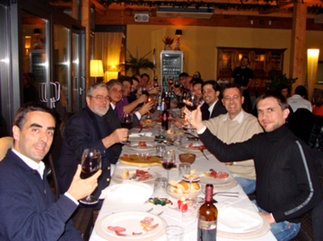 This is the end-of-year dinner of the System Integrators of MyHome. The group is a mix of interdiscipline professionals: managers, professors, entrepaneurs, engineers, installers, and software developers all interested in domotics.