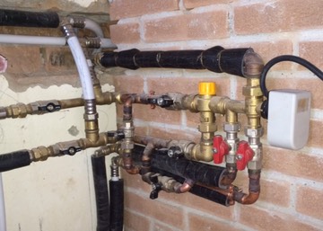 The solarincal is a deviator and a thermostatic mixer. The deviator sends the input water to the gas water heater only when the water from the electric water heater is less than 45 °C. The water from the selected water heater is mixed with the cold water to achieve the wished water temperature.