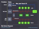 First, the network gateways. The DSL Modem and Router, a gateway between the Internet and the Local Area Networks (Ethernet and Wi-Fi). The router enable access for personal devices like IPod Touch, PC and MAC to communicate with the home controller to manage devices connected to the automation bus and the cameras attached to the F452V . The F452V allows the user to access the home automation system through the internet.